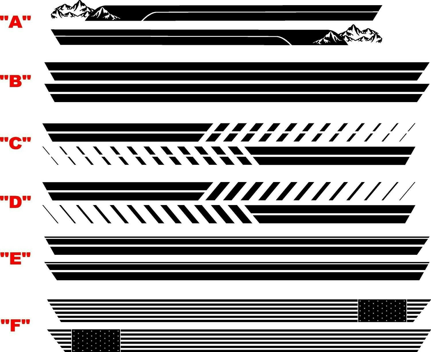 Rocker Stripe Side Graphics Kit for your 2021 - Up Ford Bronco! Make your Bronco Stand out!!! Available for 2 door and 4 Door Models and all Trim Levels. Base, Big Bend, Black Diamond, Outer Banks, Badlands, Wildtrak and First Edition 2021 - Up Bronco.
